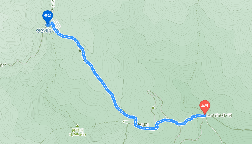 - 출발지: 성삼재 휴게소 → 노고단 고개까지 이어지는 임도길.